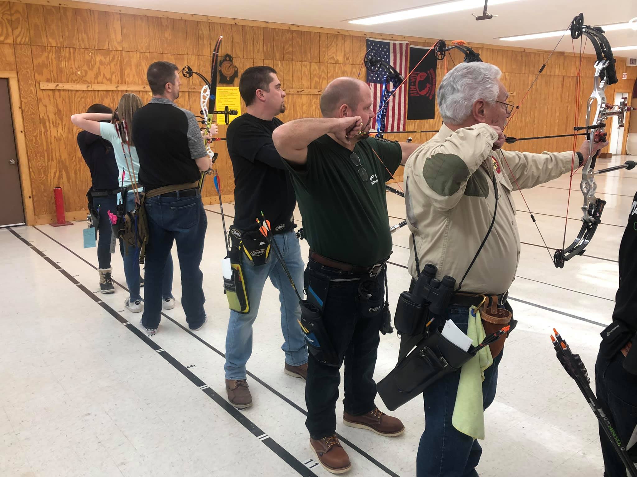 Adult archers shooting on the indoor range